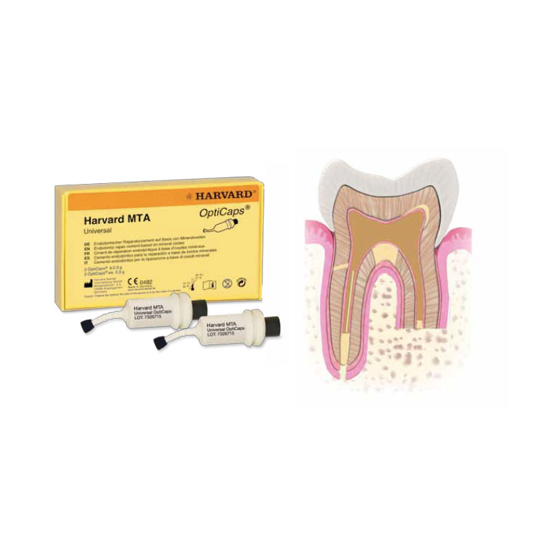 Endodontic biocompatible repair cement in capsules based on blended mineral oxides (mineral trioxide aggregate)